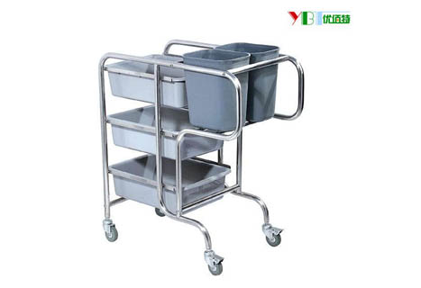 餐盘收集车也称不锈钢收集车,采用工程级塑料制成,坚固耐用,底部有万向轮,移动方便,铝合金支架,美观大方,便宜便捷,超大容量,坚固耐用。餐盘收集车适用于酒店、饭店、食堂等。