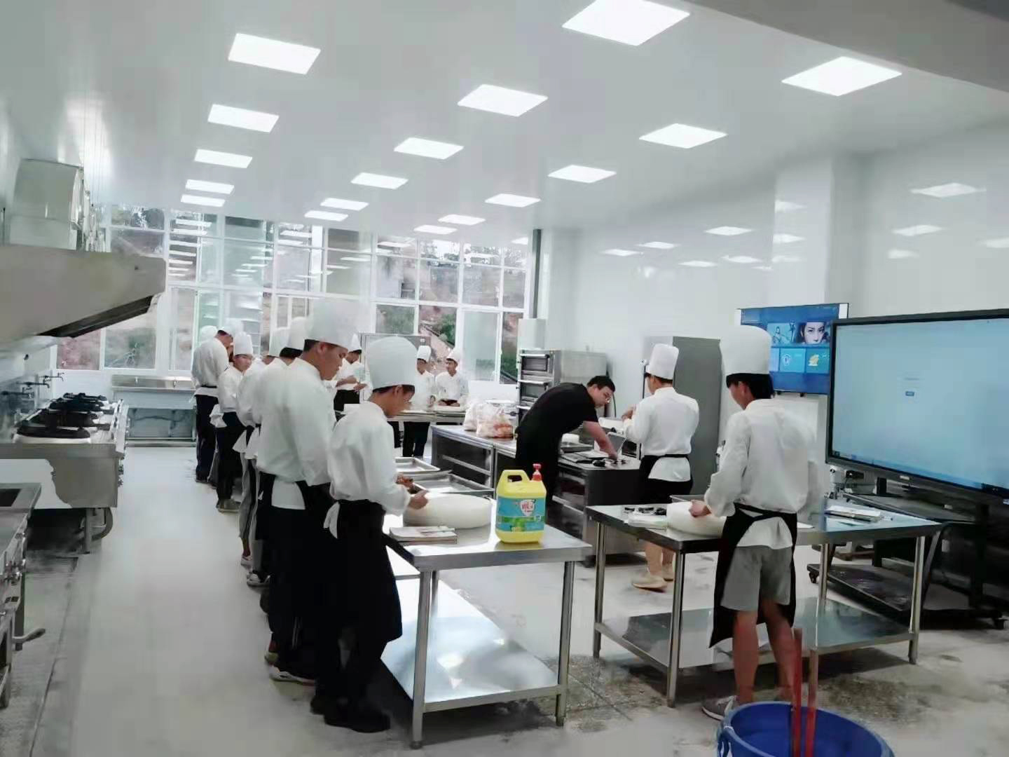 (4)白案区:其功能是面粉类食物调和、压制、工艺拼花、拼盘等。