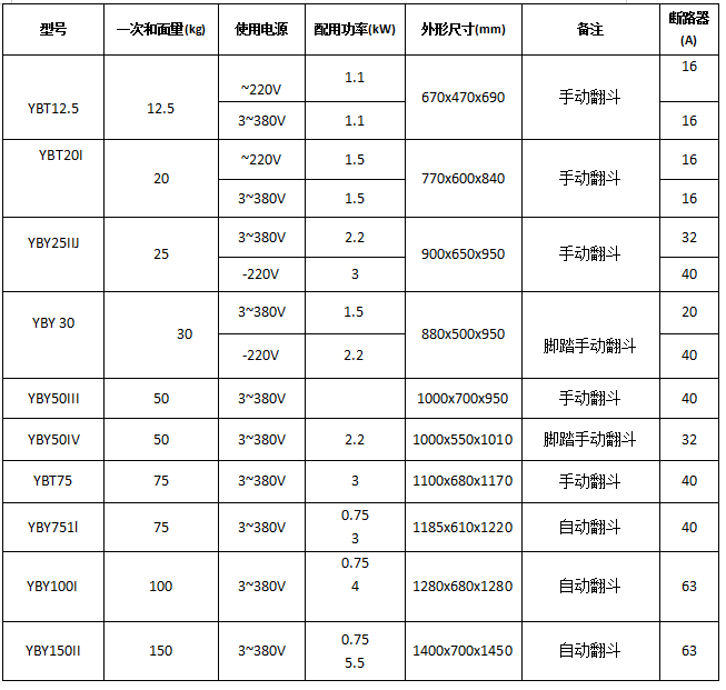 2、组成部分:主要有机架、面斗、脚踏翻斗机构、电器控制部分等组成。传动部分采用圆弧齿蜗轮减速机及链条传动,效率高、噪音低、寿命长。电机内置式:结构紧凑、封性好,电器控制部分通过控制按钮,交流接触器控制电机正转、反转、停止,漏电断路器起过载、短路、漏电保护作用。